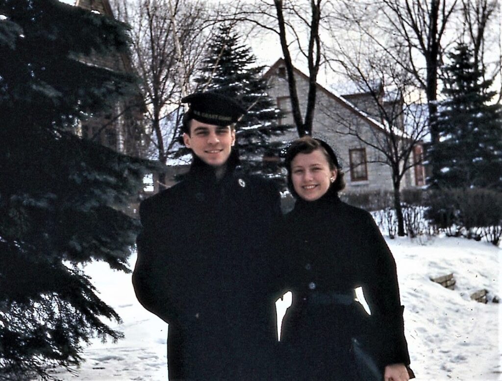 Milwaukee, July 1951 was a beautiful day when Ginny walked into the neighborhood grocery store where Bruce worked part-time. Ginny was about to start her last year of high school, and Bruce was on the eve of his military service in the Korean War, having just completed his pre-dental education. We both agree it was love at first sight. After a number of such shopping encounters and flirting, we had our first date. After one year of dating and two years of engagement, we married, near the end of Bruce’s enlistment, on October 16, 1954.