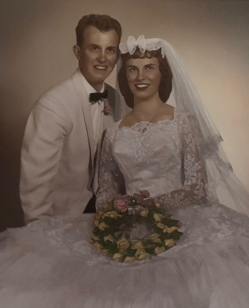 We met as high school classmates at Ripon High School. We got engaged 2 weeks before David joined the Navy in the spring of 1957. David was in the Navy 2 years, and we got married 3 weeks after he returned on May 2, 1959 at the First Congregational Church in Ripon.