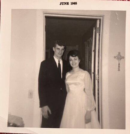 When Mary answered the knock at the door, she remembered seeing the pointiest pair of shoes she ever saw on a guy! They belonged to Dean, Denny’s friend, and Denny was right behind him. Mary doesn’t remember how long they had to entertain the guys, but it was finally time to leave to pick up Katie. As the group piled into the car with the guys in the front and the girls in the back, Mary remembers saying “hey you” to get the driver’s (Denny’s) attention to give directions. She couldn’t remember his name right then. Denny liked to continue to bring that up after they knew each other better!