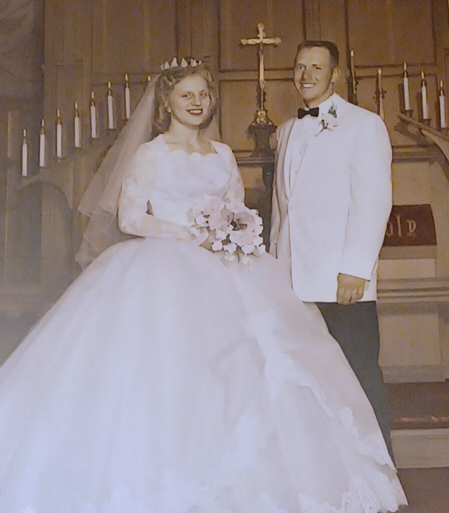 August 1958- We met at the “400 Club” Dance Pavilion outside of Menomonie, WI, which is now Rassbach’s Furniture store. Both of us were there with our own friends. We met and danced with one another and sparks flew and here we are 64 years later! (side note-family lore has it that Mom thought Dad was cute and she “accidentally” stepped on his toe as she was dancing out on the floor to get his attention. We are very happy that she did!) One week later, we had our first date. It was my very first date with a guy, my parents had not allowed me to date prior to this, I was 18!